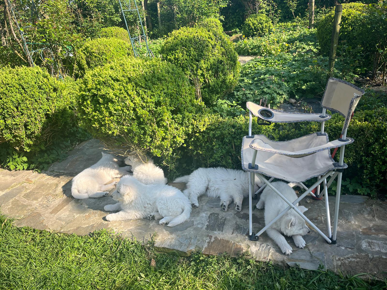 De puppy's zijn groot geworden binnen ons gezin en dus knuffel en sociaal gewoon.